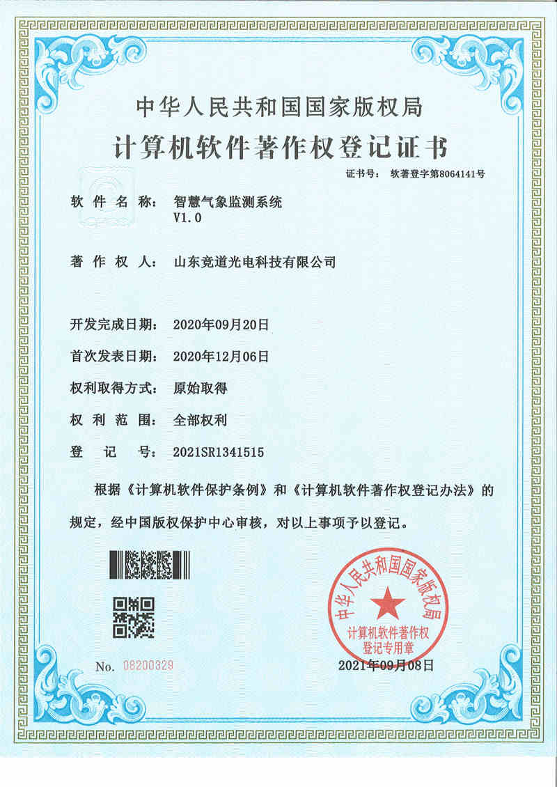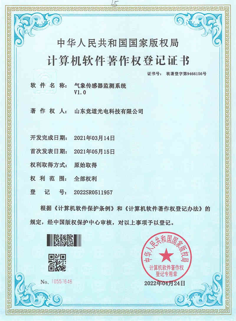 山东竞道光电科技有限公司是一家致力于气象环境监测系统的研发、生产、销售、服务于一体的企业,公司总部位于山东省潍坊市。目前,公司已具备批量生产系列化的自动气象与环境监测站、各类探测传感器、及维护保障设备等的能力,产品已被广泛应用于气象、林业、农业、科研、大中院校等众多领域,并保持着良好的客户口誉。山东竞道光电科技有限公司在气象站研发生产领域具有多年的经验,经过多年运营发展,形成了强大的产品研发团队、流水线式生产团队、售后服务团队。竞道光电始终坚持以市场为导向,以质量为根本的原则,开发出具有自主知识产权的气象与环境仪器。用户涵盖全国的气象、矿业、农业、林业、水利水电、畜牧、植物保护等领域,获得广大用户一致好评。 ···
